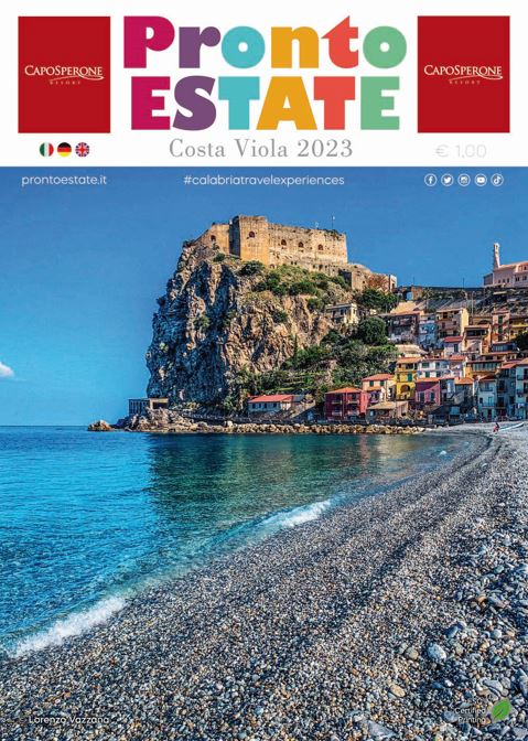 Dopo il successo della prima edizione del 2022, invece, “Pronto Estate Costa Viola” (10.000 copie) mantiene le 80 pagine, le 3 lingue (l’italiano, l’inglese e il tedesco), il costo (1 euro) e buona parte delle sue rubriche. Anche qui sono state confermate le mappe 3D, le varie top10, i posti da visitare, le escursioni, il food, le spiagge, la sezione “Experiences” (Novità 2023) e il FOCUS sull’area grecanica reggina.