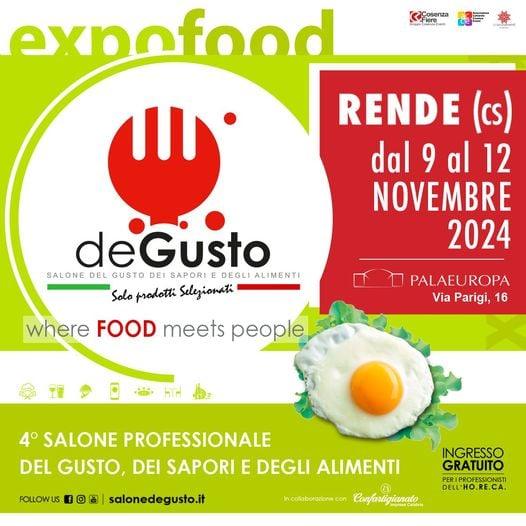 Torna Degusto, la fiera enogastronomica che si terrà al PALAEUROPA di Rende dal 9 al 12 novembre.