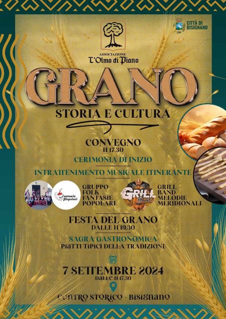 L’Associazione L’Olmo di Piano è lieta di annunciare la prima edizione della Festa del Grano, che si terrà a Bisignano sabato 7 settembre
