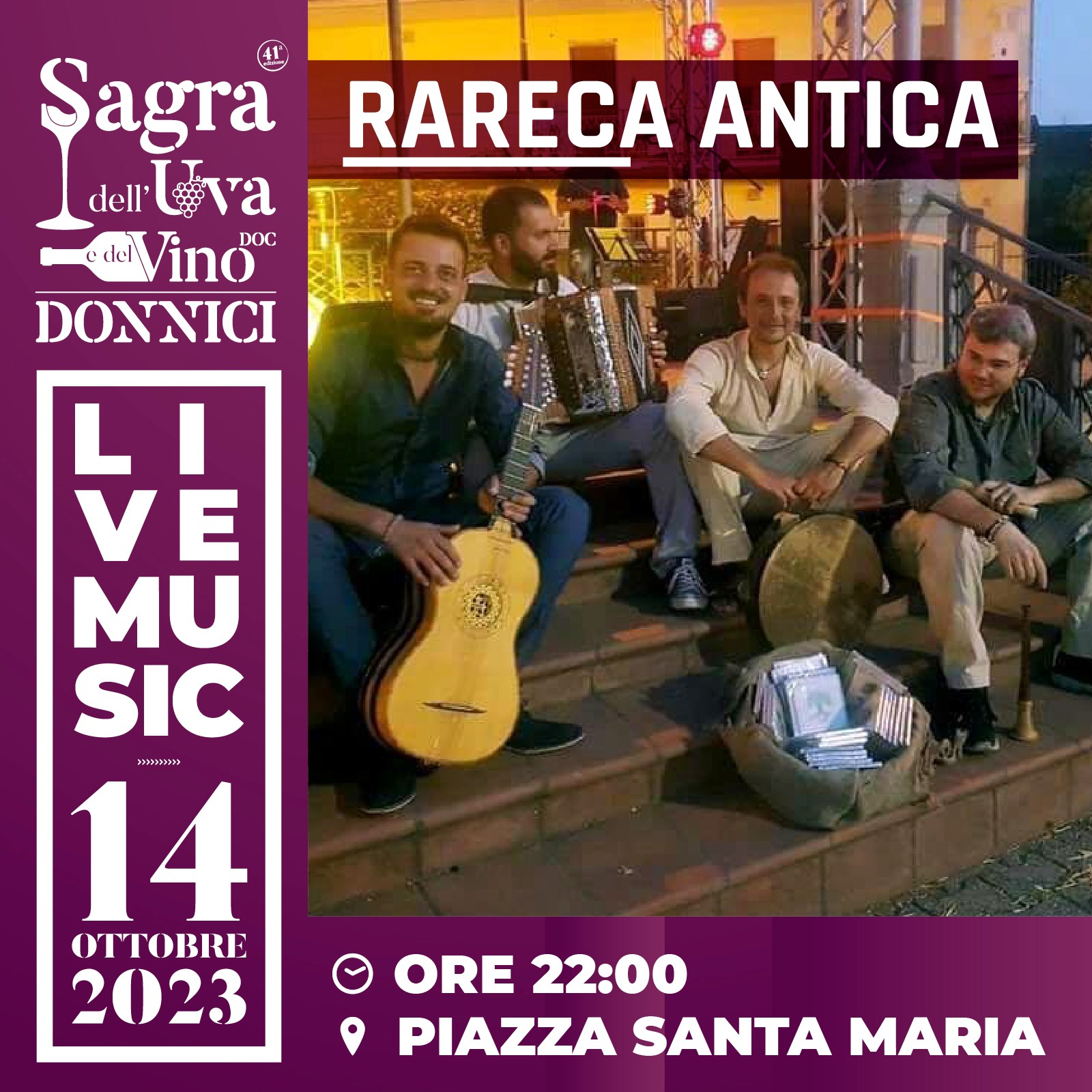 Non solo uva e vino, rigorosamente doc, ma anche tanta musica con i gruppi più talentuosi del nostro territorio, convegni e dibattiti, spettacoli, teatrali e tanto altro che animerà lo splendido paese di Donnici.