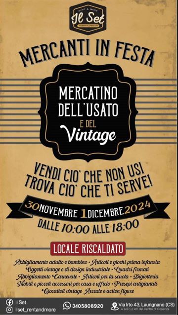 Appuntamento il 30 Novembre e 1 Dicembre dalle 10:00 alle 18:00, presso IL SET in Via Irto 43 Laurignano (CS) a solo 1,2 km da Piazza Riforma
