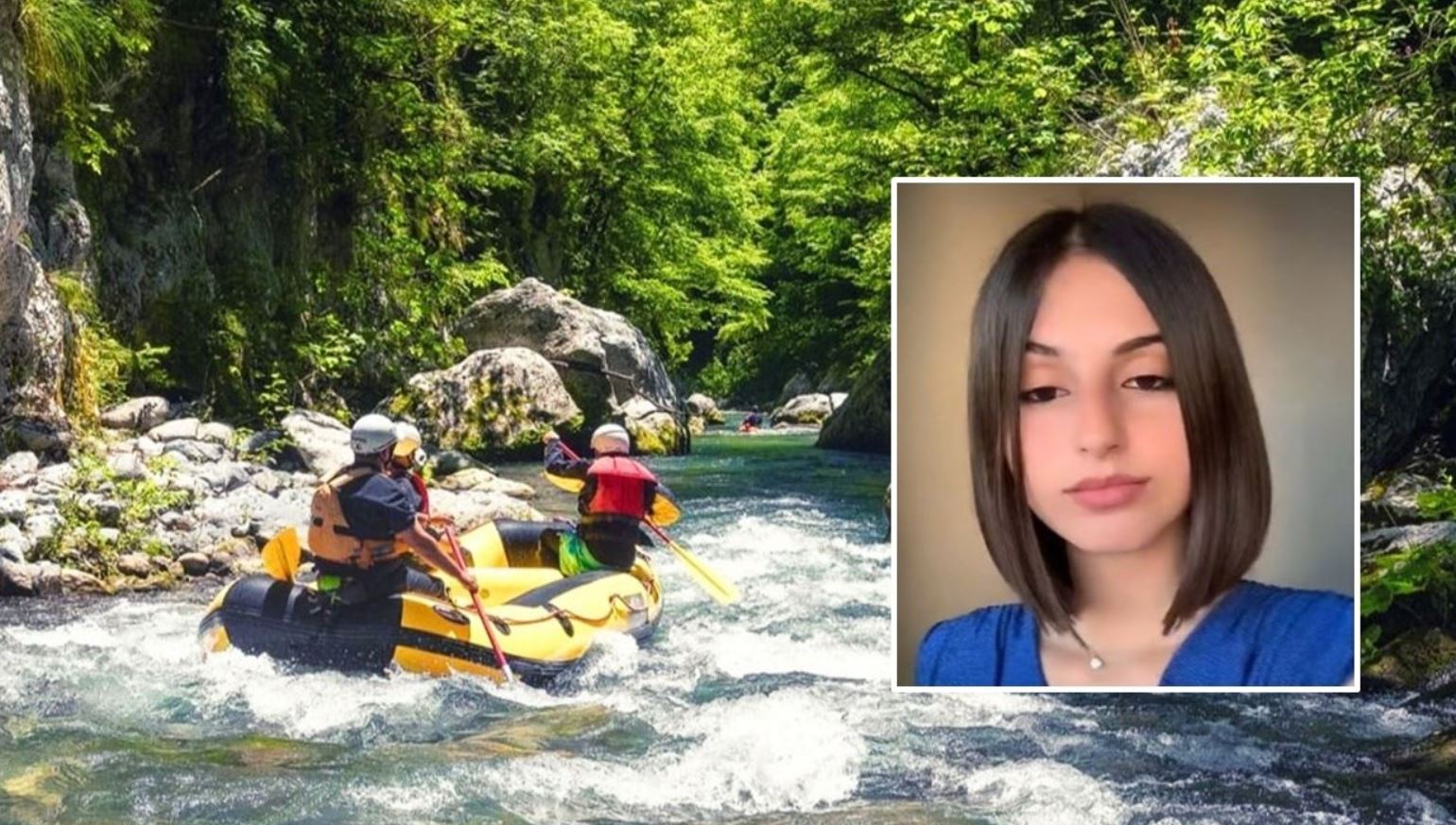 Denise Galatà e, sullo sfondo, rafting sul fiume Lao in un’immagine di repertorio