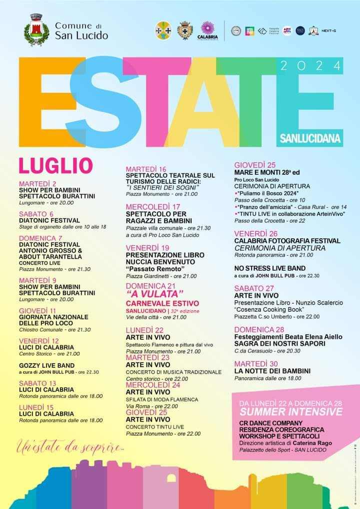 SAN LUCIDO- Sarà un’estate da scoprire, da vivere tutta a San Lucido meta turistica tra le più rinomate della Calabria che, anche quest’anno si appresta a regalare ai turisti e ai residenti una programmazione estiva di primissimo livello.