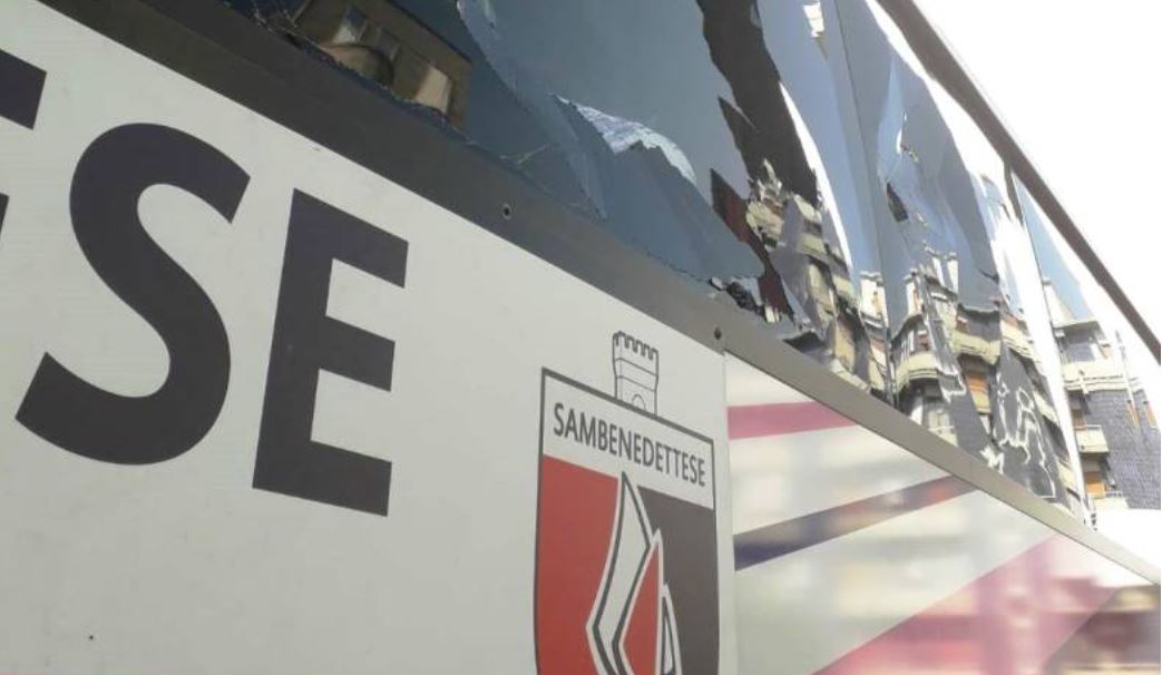 “Il pullman della Sambenedettese è stato preso a sassate a Cosenza. Il mezzo si trovava parcheggiato all’esterno dell’hotel President a Rende e, poco dopo la mezzanotte di oggi, qualcuno ha iniziato a tirargli contro dei sassi finestrini e carrozzeria.