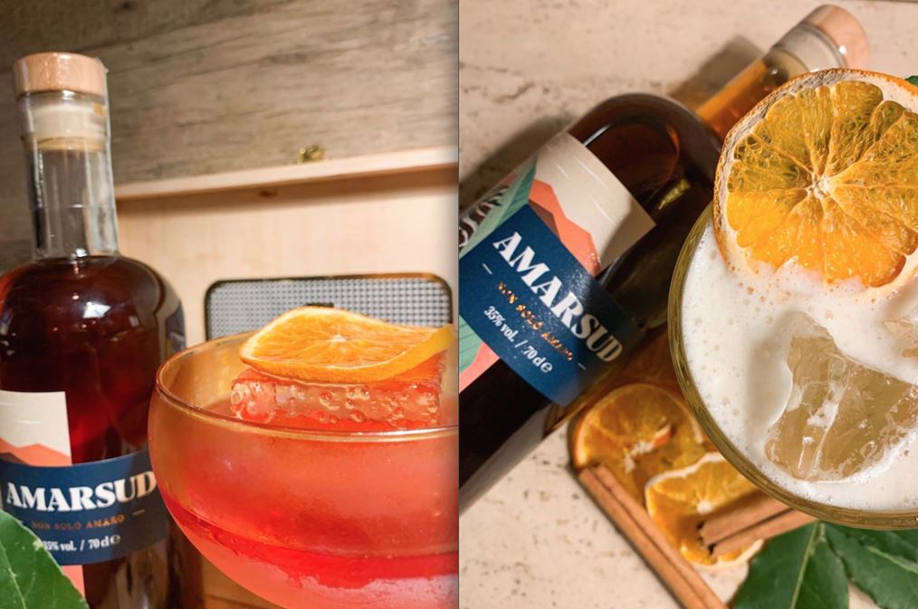 “Amarsud è il primo amaro con il Sud in etichetta. Gli ingredienti principali dell’amaro nato dalla mente (e dalle mani) del bartender cosentino Roberto Gulino sono – oltre ad acqua, alcole neutro e zucchero – infusi di arancia amara, alloro, rosmarino, menta, cannella, china e chiodi di garofano.”