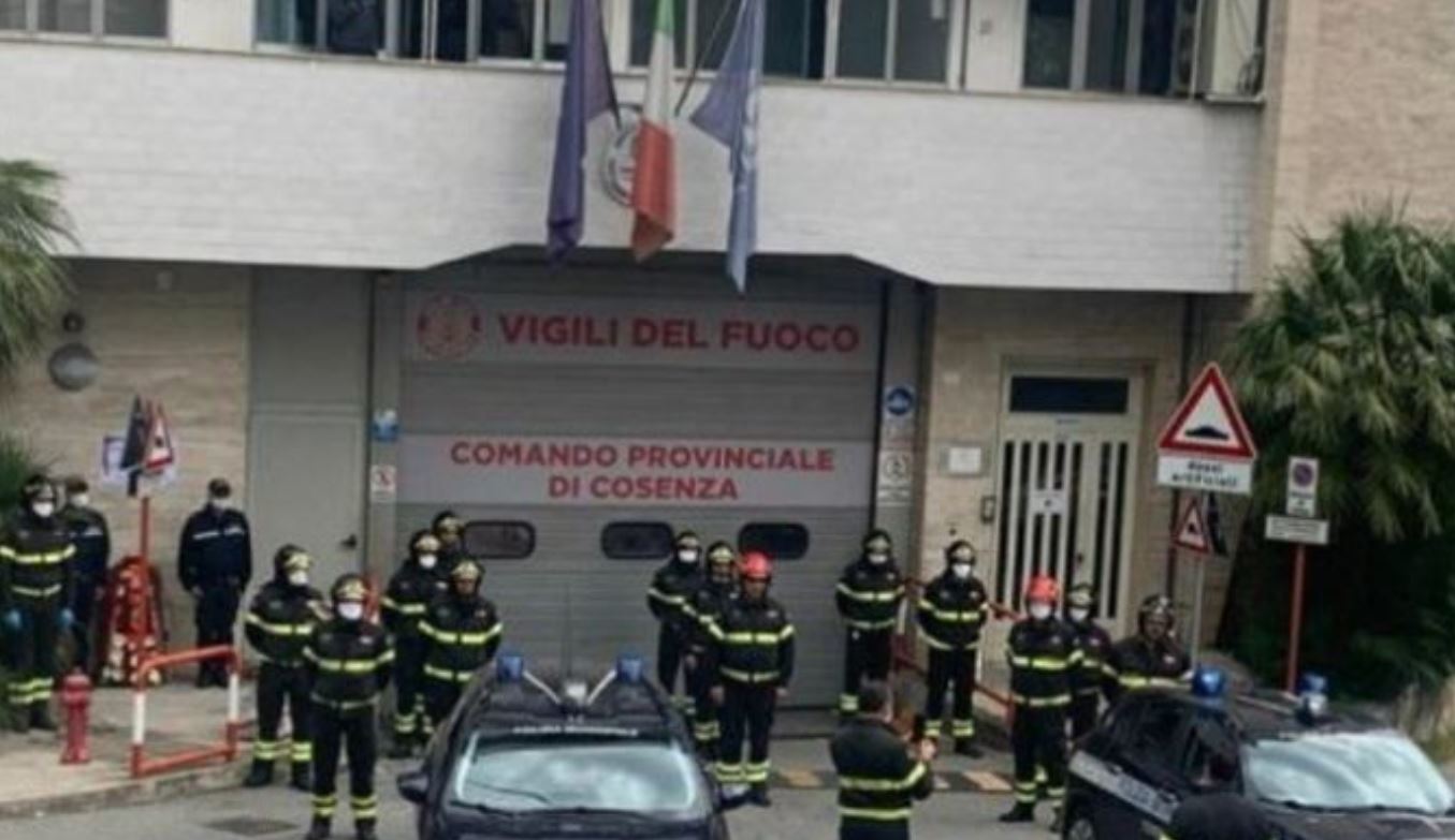 “Si sono fermati per un minuto i vigili del fuoco del comando provinciale di Cosenza, per ricordare e onorare il loro amico e collega Angelo Bonaventura Ferri, vittima del Covid-19. Schierati dinnanzi all’ingresso della caserma in via della Repubblica, sono rimasti in silenzio”