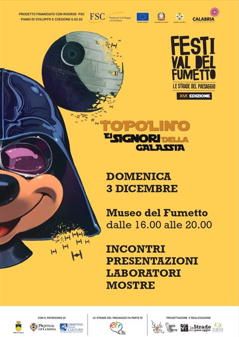 Nell’ambito della mostra Topolino e i Signori della Galassia, in corso al Museo del Fumetto di Cosenza, domenica 3 Dicembre è previsto un pomeriggio ricco di appuntamenti per tutte le fasce di età