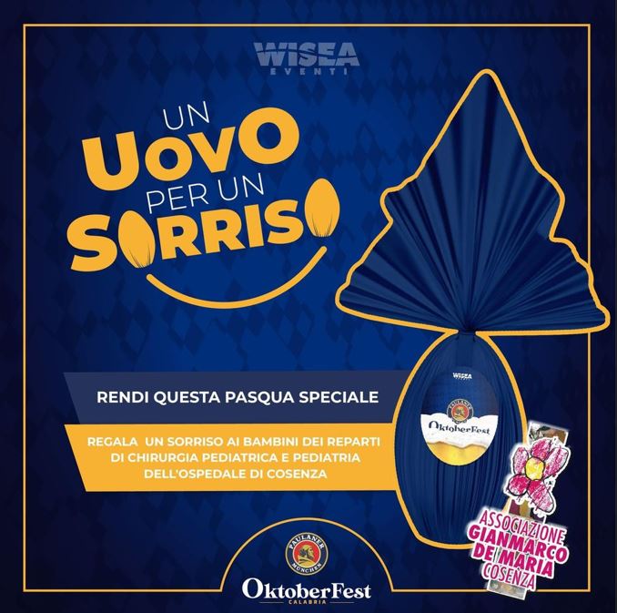 Sulle pagine Facebook e Instagram dell’Oktoberfest Calabria è stato lanciato il contest “Un uovo per un sorriso” in cui si invitano i follower a formulare un augurio di pronta guarigione o un semplice augurio pasquale da rivolgere ai piccoli pazienti.
