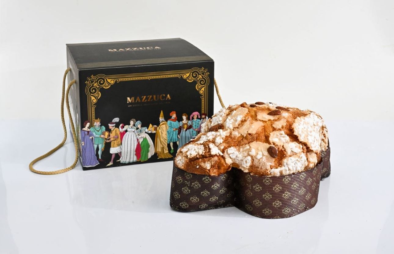 “Alta, molto ben sviluppata, dal portamento verticale con una glassa abbastanza composta, guarnita di profumate mandorle grezze. Così si presenta la colomba dell’Antica Salumeria Mazzuca, con laboratorio di lievitati e altre prelibatezze. Il taglio consegna una fetta di un giallo spento ma credibile, dall’occhiatura libera ed esuberante, decisamente al passo con i tempi.