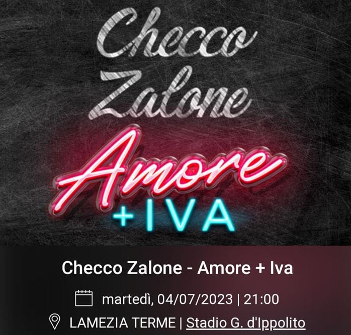 Confermata per il prossimo 4 luglio alle ore 21:00 allo Stadio Guido d’Ippolito di Lamezia Terme l’unica tappa in Calabria del tour “Amore + Iva”, il nuovo show di Checco Zalone, l’attore comico italiano di maggior successo degli ultimi anni