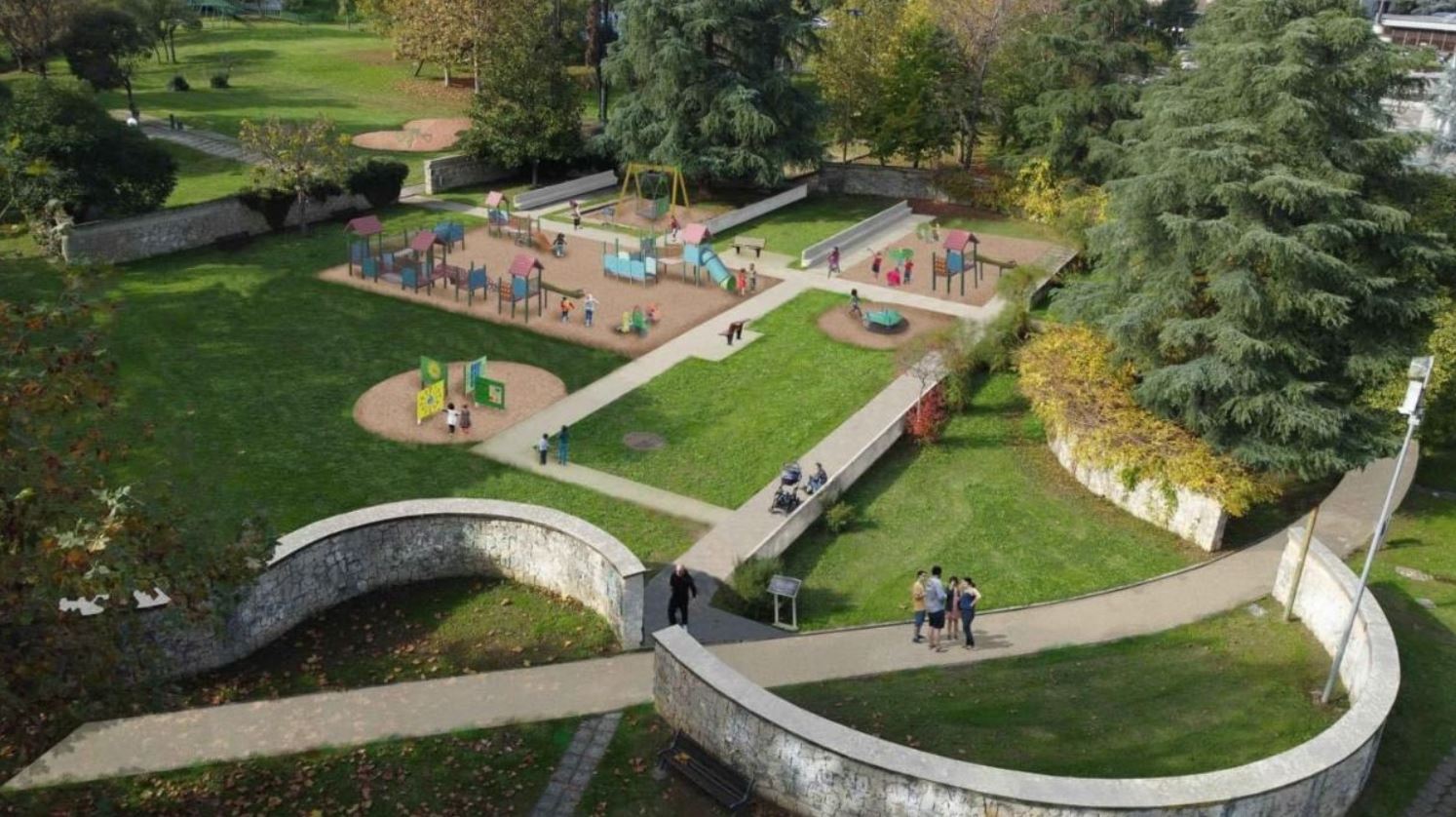 “Percorsi pedonali attrezzati, riqualificazione dell’area giochi, realizzazione di percorsi sensoriali, ampliamento e ripristino dell’impianto di illuminazione, oltre alla realizzazione di una rampa di collegamento con l’ex-ponte ferroviario che con un percorso ciclopedonale unirà il parco Robinson al Nicholas Green.”