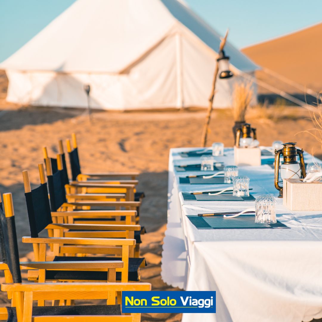 Cenate sotto le stelle nel cuore del deserto. A Dubai, questa esperienza si arricchisce di musica e danze tradizionali, avvolti dall’atmosfera unica del deserto al tramonto.