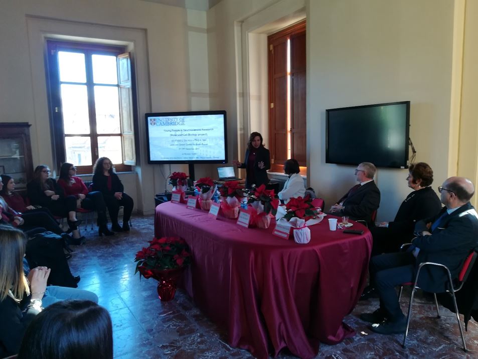 Oggi 18 dicembre 2018, nell’Aula magna dell’Istituto tecnico “A. Nitti” di piazza Cappello a Cosenza, è stato organizzato un evento veramente pregnante dal punto di vista culturale e formativo. Gli studenti e il pubblico intervenuto sono stati guidati in un “Viaggio intorno al cervello” alla scoperta delle piste più attuali della ricerca su alcune delle patologie legate alla neuro-degenerazione: l’Alzheimer, il morbo di Parkinson, la sclerosi multipla, le demenze dovute a danni neuronali, sono stati affrontati da validissimi relatori appartenenti al mondo medico e della ricerca scientifica. L’occasione è stata data dalla manifestazione di presentazione del Progetto PON “MolecularcellBiology”, un percorso di Alternanza scuola lavoro all’estero, realizzato nel periodo dal 3 settembre al 29 settembre 2018 per un monte ore totale di 120 ore, nel Centro di Neuroscienze della prestigiosa Università di Cambridge, in Inghilterra. La progettazione ha coinvolto 15 studenti delle attuali classi V A e V B dell’indirizzo Biotecnologie sanitarie dell’Istituto tecnico “A. Nitti”, selezionati sulla base del merito scolastico e del conseguimento della certificazione di Lingua Inglese a livello B1 Trinity.Gli studenti sono stati accompagnati nel percorso dai tutor scolastici, prof.sse Francesca Mazzei; Marcella Carbone; Rosa Giuliana Spagnuolo e prof. Sandro Falsetta.