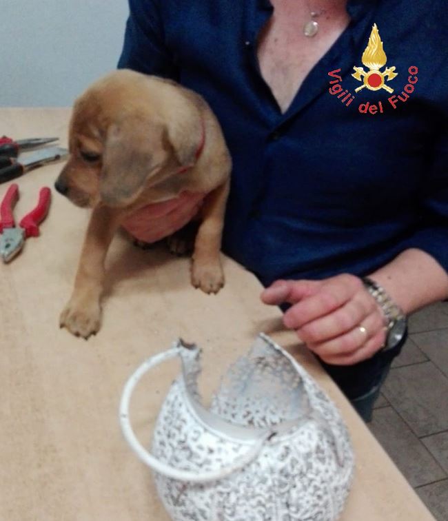 “La curiosità ha portato il cucciolo ad infilare la testa all’interno di un paralume di forma sferica rimanendo incastrato. Vani i tentativi dei proprietari che non sapendo più cosa fare e vedendo il loro piccolo amico sofferente, hanno pensato bene di rivolgersi ai vigili del fuoco”