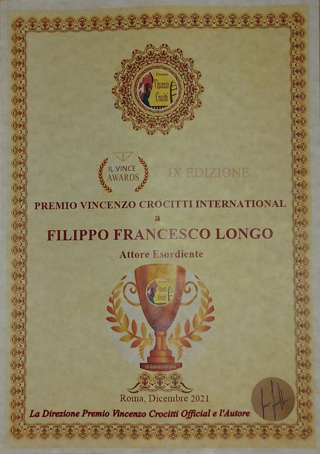 Voglio ringraziare il Dott. Francesco Fiumarella, Autore e Direttore del premio Vincenzo Crocitti International IX°EDIZIONE e tutto il comitato direttivo per aver notato in me delle qualità artistiche, premiando il mio operato cinematografico svolto in questi anni con semplicità e dedizione.