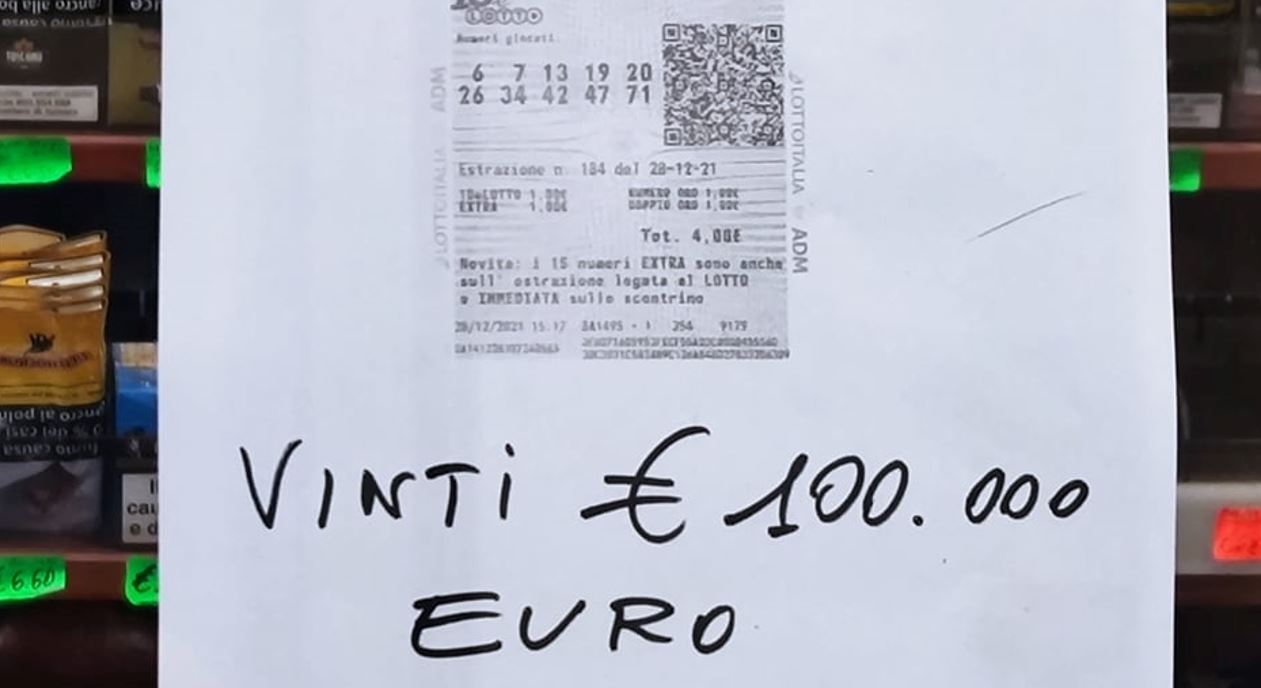 Nella stessa ricevitoria, circa 6 mesi fa, un altro giocatore si aggiudicò la vincita di 339mila € al gioco del Lotto.