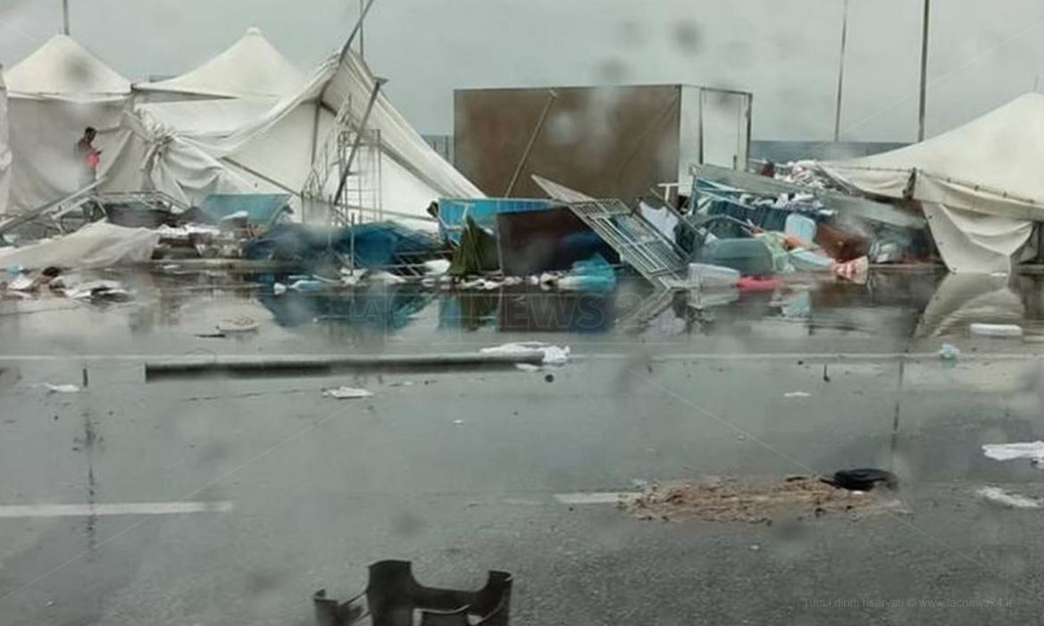 Tetti divelti, tensostrutture del lungomare spazzate via e allagamenti a causa del vento e delle forti piogge