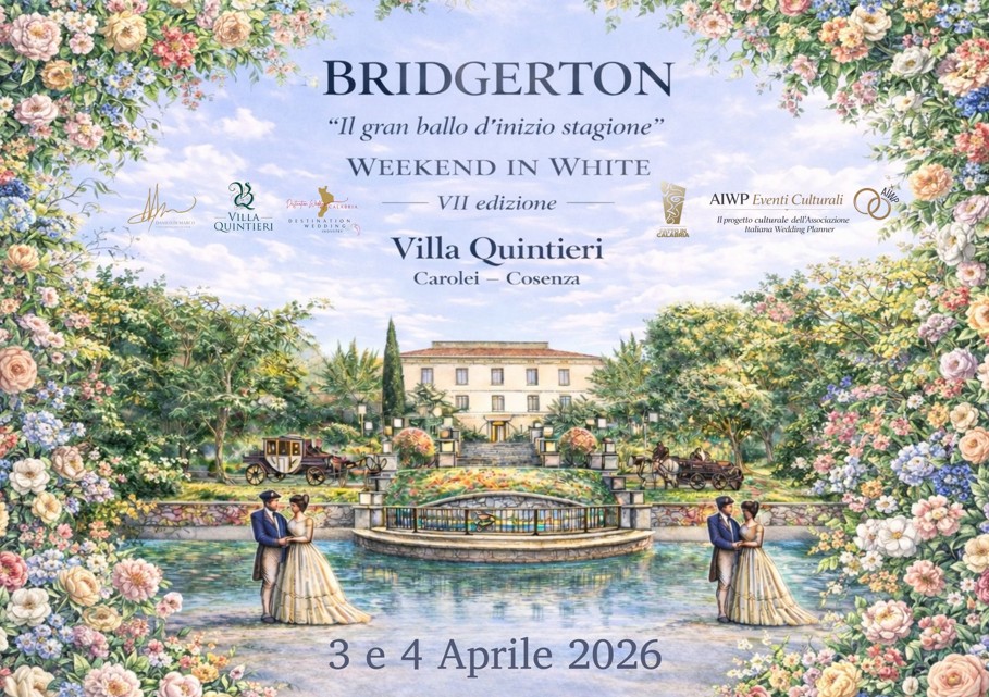 “L’edizione 2026, nei giorni 3 e 4 aprile, promette di essere un’esperienza immersiva unica, capace di coniugare eleganza, tendenze e suggestioni da favola, grazie a un tema d’eccezione: l’universo romantico e raffinato di Bridgerton. Nella fiabesca cornice di Villa Quintieri, dimora storica di grande fascino, futuri sposi e visitatori saranno accompagnati in un viaggio tra atmosfere regency – tipici della fortunatissima serie Netflix firmata Shonda Rhimes – allestimenti scenografici e dettagli curati con maestria.