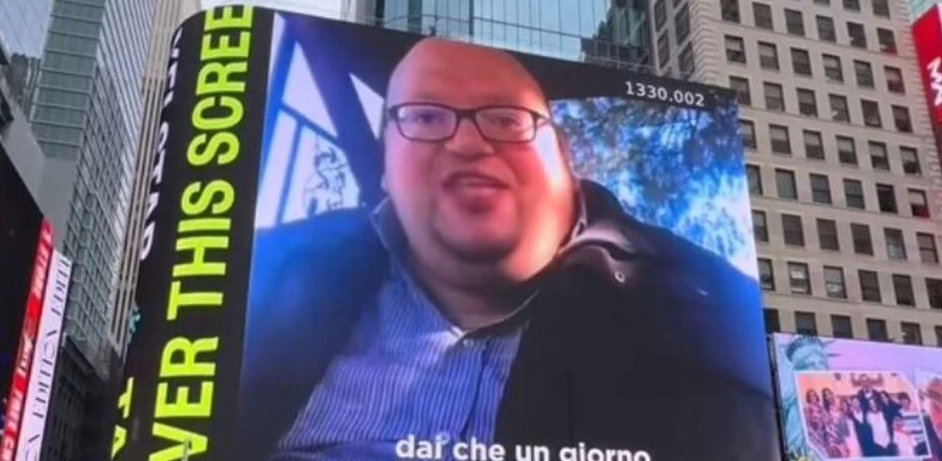 Per questo motivo, il suo fan ha deciso di far avverare in qualche modo questo suo desiderio, investendo i 40 dollari necessari per lo spazio sul maxischermo dell’iconica piazza newyorchese tramite il servizio offerto da un’apposita app.”